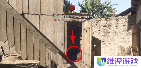 皇室宝库的钥匙就在瓦万克家后院的小木屋,这座小屋是厕所所在的位置。它位于黄色搜索区域的南边,靠近时,系统会显示“调查”提示。