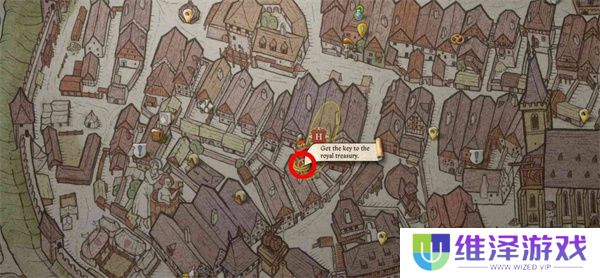 在主线任务“祈祷者”中,你需要获得皇室宝库的钥匙。任务目标会显示在瓦万克家附近的搜索区域,但没有具体位置标记。