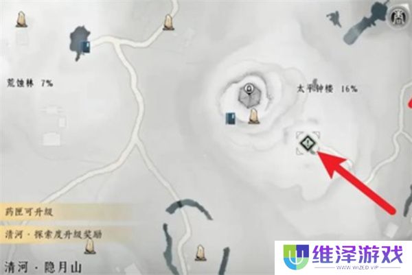 在地图上找到清河隐月山的位置,右侧会有一个NPC——仇越海。