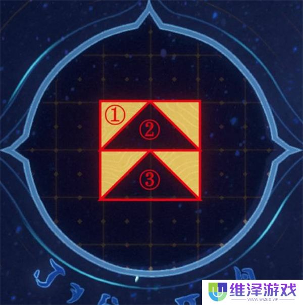 依次选择:① 中央大正方形 → ② 上方三角形 → ③ 下方三角形