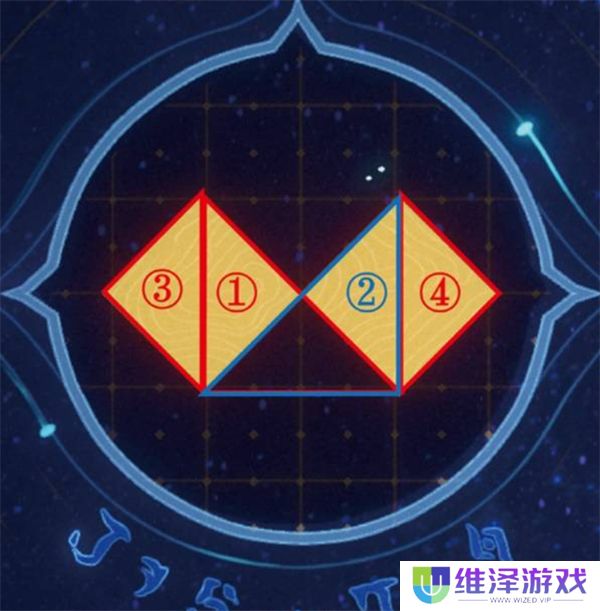 依次选择:① 中间左侧大三角形 → ② 中间右侧大三角形 → ③ 左侧小三角形 → ④ 右侧小三角形
