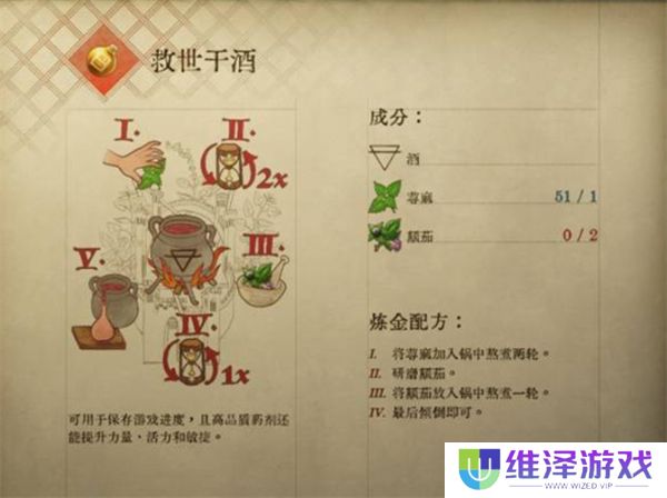天国拯救2中的保存机制比较特别,玩家只有上床睡觉或者退出游戏的时候才能保存进度,如果想要手动保存的话需要一个名为救世干酒的保存药剂才能保存存档。但是救世干酒要怎么获得呢?其实可以通过制作来获得,这里小编为各位带来了天国拯救2保存药剂怎么制作的攻略,希望对你有帮助。