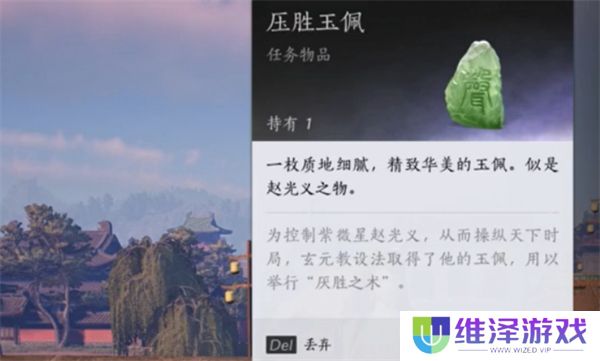 完成“白日参辰”任务后,你将会获得一个名为“压胜玉佩”的道具。这个玉佩是进入后续隐藏剧情的关键物品。