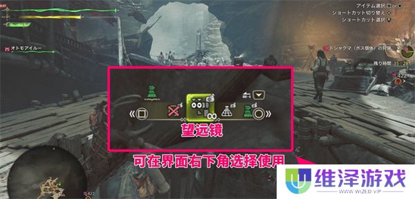 望远镜可以在物品滑块中选择使用。你需要按住 R1,然后按 □ 或 ○ 键来调整物品滑块,松开 R1 后按 □ 键来使用望远镜。