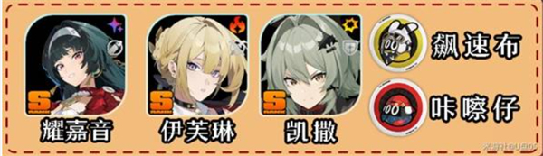 耀佳音和莱特都属于非驻场角色,能够提供强力的buff和增益效果,同时不会占用过多的在场时间,这使得伊芙琳的驻场输出可以得到最大化的提升。