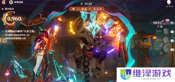 在挑战过程中,多次切换角色并触发不同的元素反应来激活增益效果。触发增益后,屏幕下方会显示增益倒计时,玩家需确保增益效果的持续覆盖,以提高战斗效率。