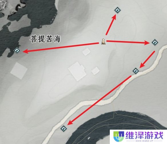 菩提苦海附近有5个蹊跷可收集,位置与路线图如下。