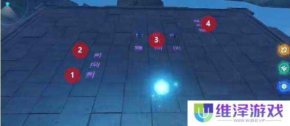 进入紫色关卡以后,脚踩图中标记的文字。(左侧两边2、中间正中央1、右侧中间1)
