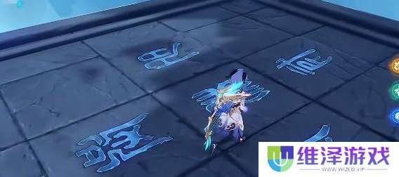 2、进入副本以后我们看到平台中间四个方向有四个不同颜色的字,对应了四个关卡。