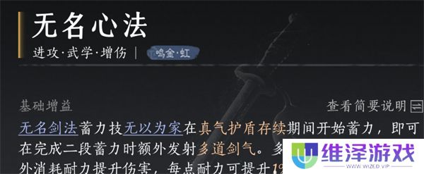 心法效果:专为无名剑法设计,能够增加蓄力后的伤害输出。
