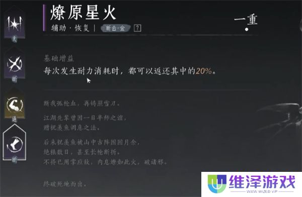基础增益:每次耐力消耗时,都能返还部分耐力,有效增加生存能力和持续输出。