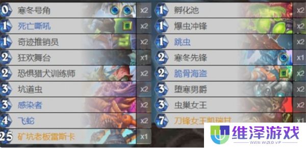 卡组特点:这套卡组压制力强,适合快速发力并施加压力,尤其在前期迅速通过传播亡语等机制建立优势。