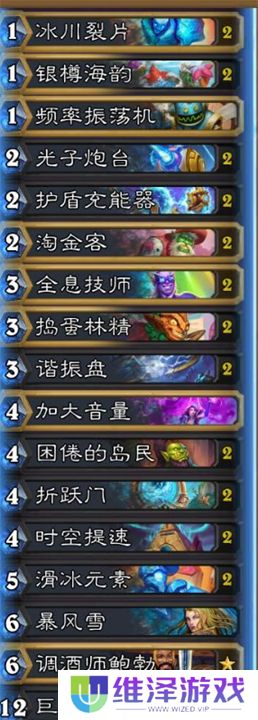 通过多次实战,这副卡组已经被优化为与当前环境最契合的巨像法卡组。相比传统的巨像法,去除了倒带、潮池学徒、虚空辉光舰等卡牌,避免了这些卡牌在实际对局中的冗余,减轻了卡组的复杂性。