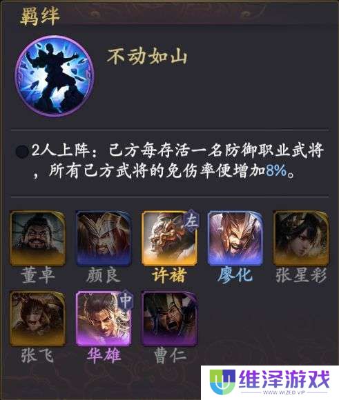 防御方面张辽可与许诸凑出大师羁绊舍生忘死,加上张星彩与许诸激活的磐石羁绊,前期在坦度方面完全够用。