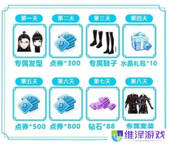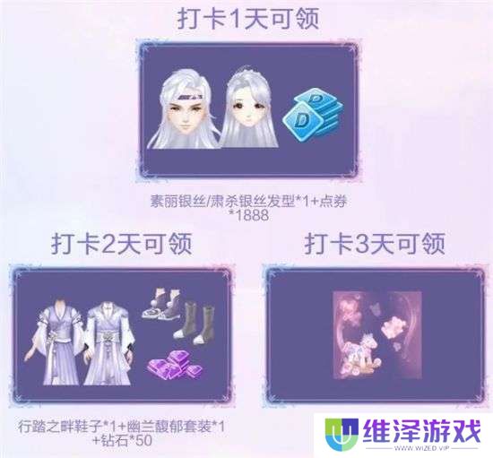 好礼送不停——当天登录游戏并成功分享即视为打卡成功,累计打卡3天还可得组合装&点券&钻石&520名片夹奖励!